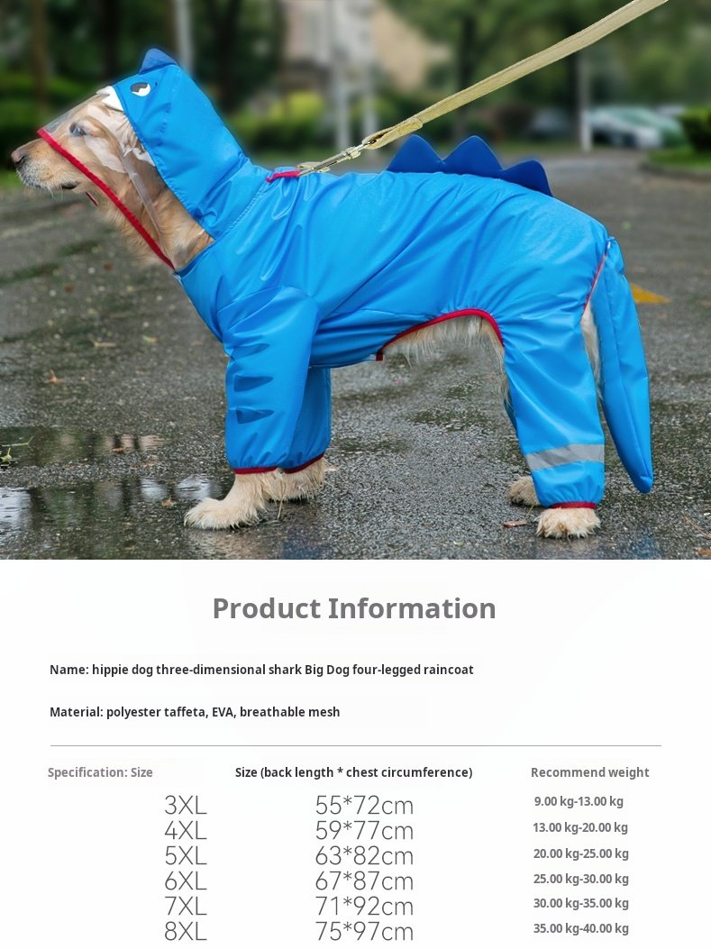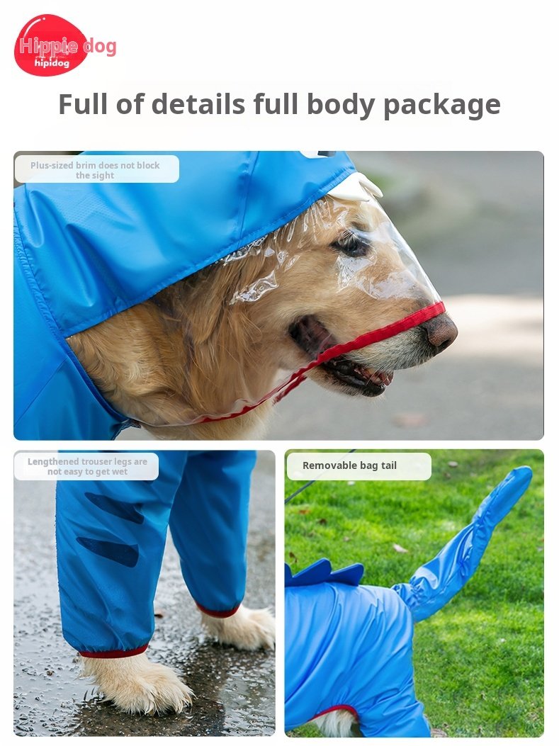 Hippies Golden Hair Big Dog Raincoat Four legged Waterproof Labrador border collie Pet Medium and Large Dog Raincoat