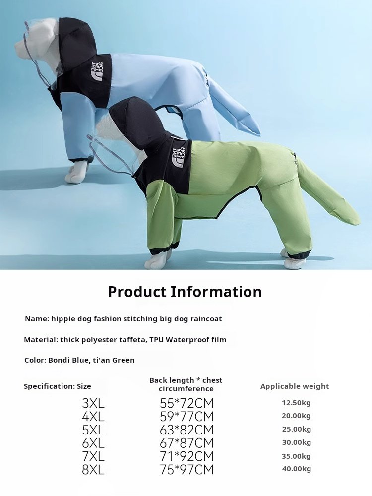Hippies Golden Hair Big Dog Raincoat Four legged Waterproof Labrador border collie Pet Medium and Large Dog Raincoat