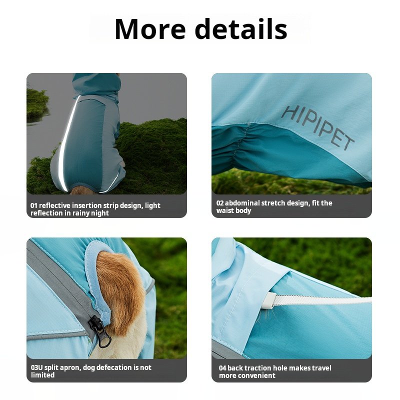 Hippies Golden Hair Big Dog Raincoat Four legged Waterproof Labrador border collie Pet Medium and Large Dog Raincoat