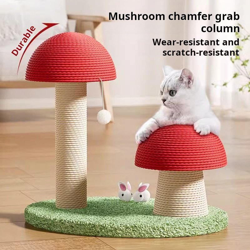 Mushroom vertical cat scratching board, sisal cat scratching column, climbing frame, integrated cat toy, durable, wear-resistant, and shavings free, easy to relieve boredom